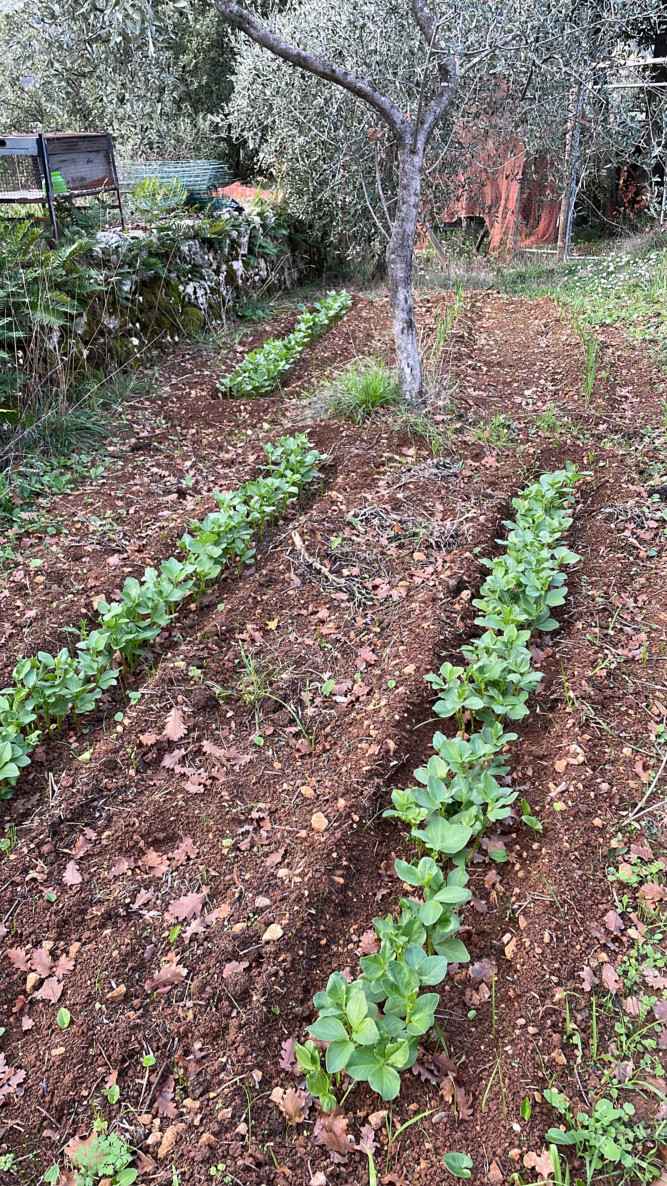 Per una rigenerazione organica del terreno e foraggiamento per api e altri insetti impollinatori, sono stati fatti diversi sovesci e inserite diverse piante nettarifere e pollinifere. Nell’ultimi tre anni ho potuto dedicare tempo anche al rifacimento di muri a secco, per mettere in sicurezza l’area di lavoro e regalare un nuovo habitat che ospitasse biodiversità.